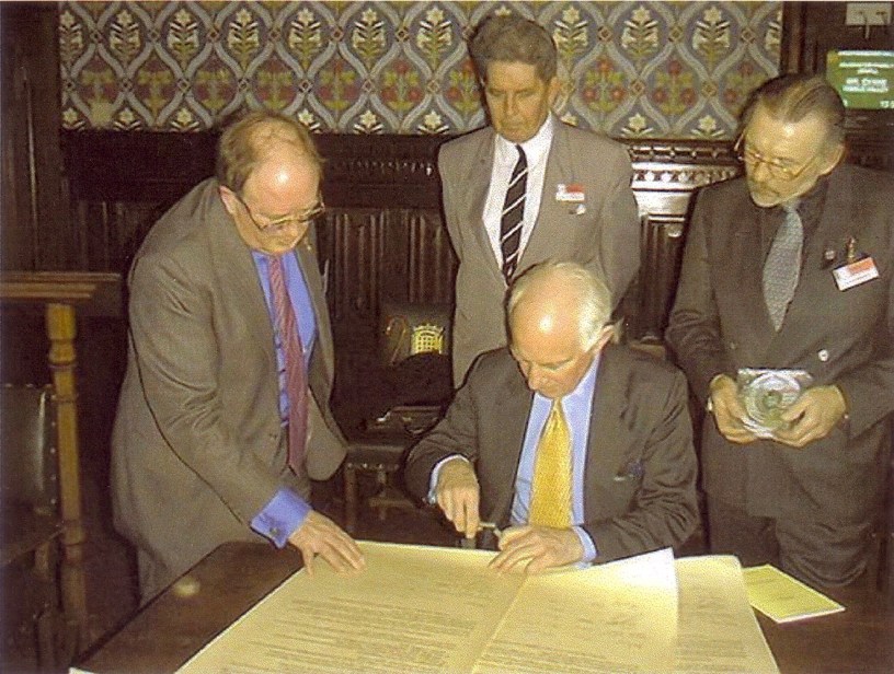 The Duke of Rutland, Viscount Masserene and Ferrard, Lord Hamilton of Dalzell and Lord Ashbourne were imbued with the spirit of the ancient Charter, thrust on King John in 1215. In accordance with the Charter’s Clause 61, the famous enforcement clause, the four presented a vellum parchment at Buckingham Palace, declaring that the ancient rights and freedoms of the British people had to be defended.