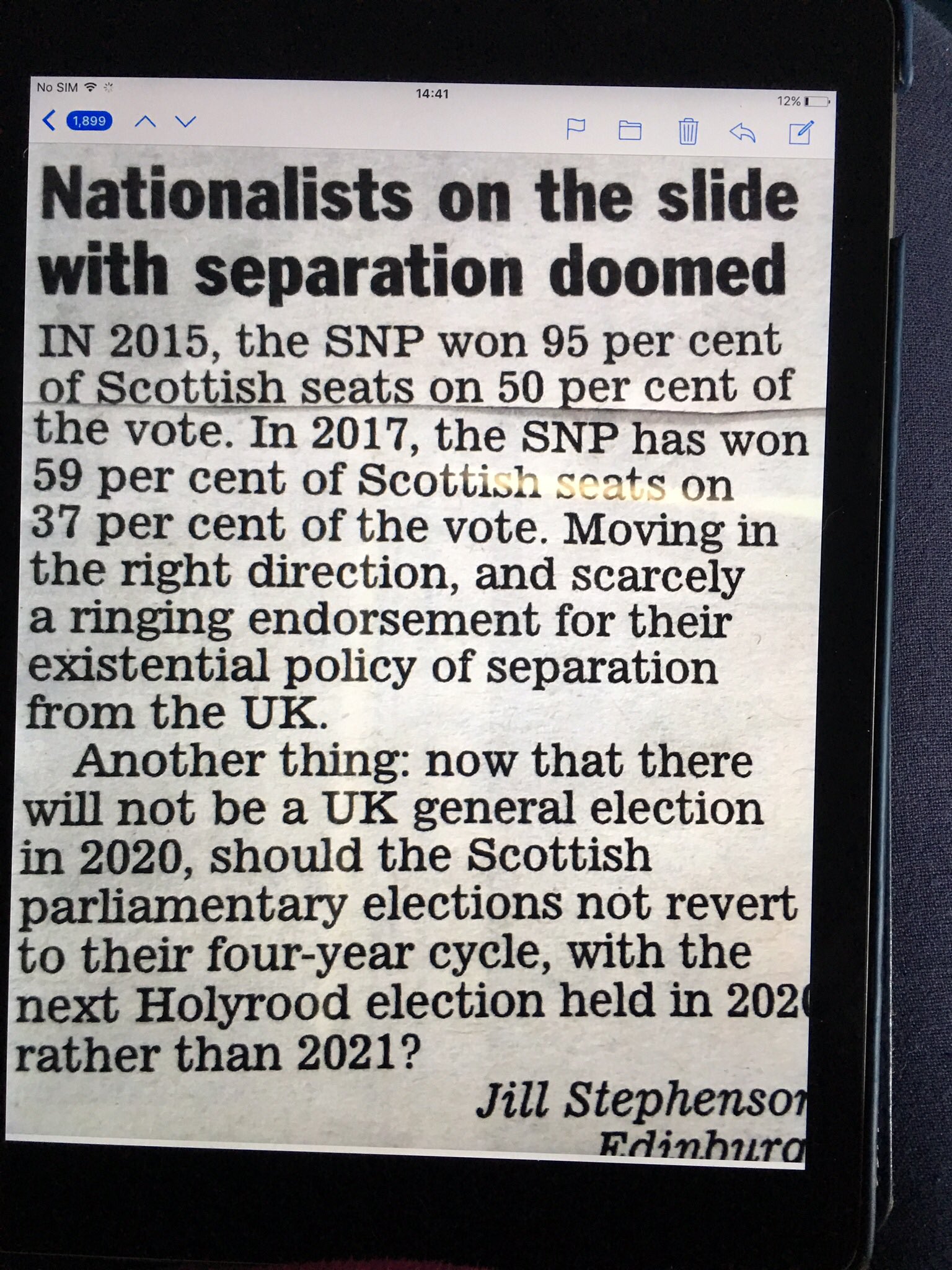 I have every reason to believe that Prof. Jill Stephenson’s letter in today’s Express will reassure responsible Scots and those have Scotland’s wellbeing at heart.